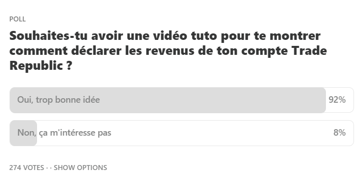 La semaine derniĂšre, 92% dâentre vous ont mentionnĂ© quâils Ă©taient intĂ©ressĂ©s par une vidĂ©o tuto pour pouvoir facilement dĂ©clarer les revenus dâun compte Trade Republic: